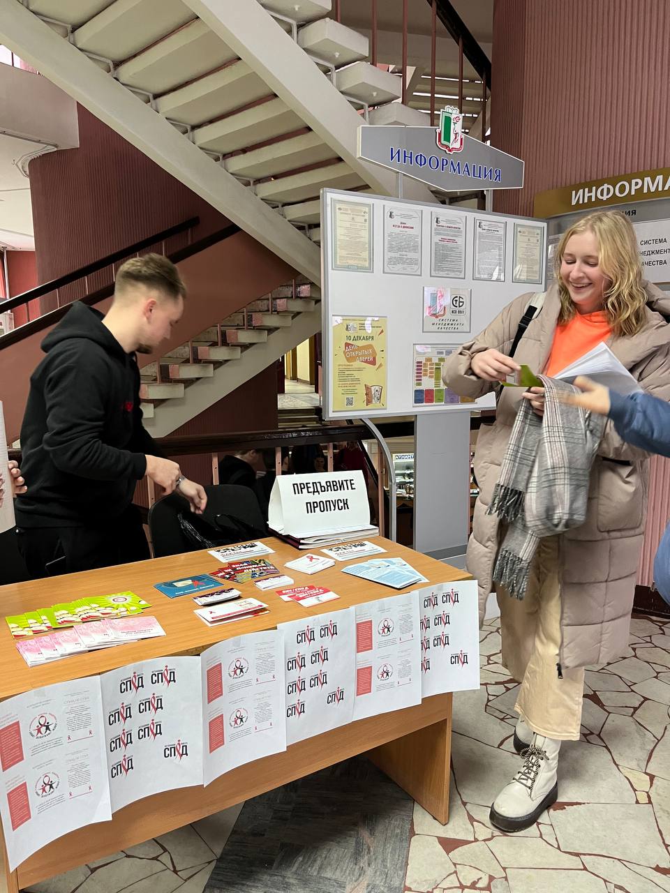 В рамках акции с целью повышения уровня знаний по проблеме ВИЧ-инфекции и формированию ответственного поведения за своё здоровье среди студентов университета волонтеры провели викторину «Что я знаю о ВИЧ/СПИД?» и раздали индивидуальные средств профилактики.
