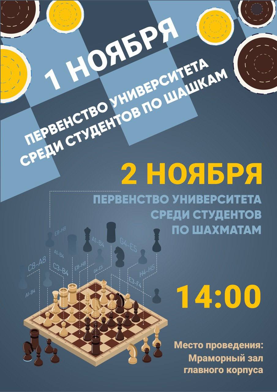 1 и 2 ноября состоится первенство университета среди студентов по шашкам и шахматам