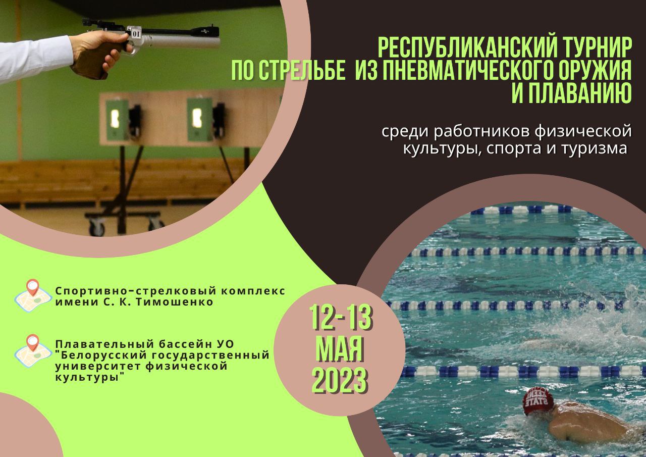 12 и 13 мая 2023 года на базе спортивно-стрелкового комплекса имени Маршала Советского Союза С.К.Тимошенко состоится Республиканский турнир по стрельбе из пневматического оружия и плаванию среди работников физической культуры, спорта и туризма.
