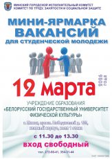 - 12 марта состоится мини-ярмарка вакансий для студентов