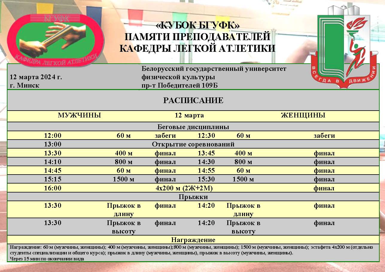 12 марта состоится открытый кубок университета по легкой атлетике в помещении памяти преподавателей кафедры легкой атлетики