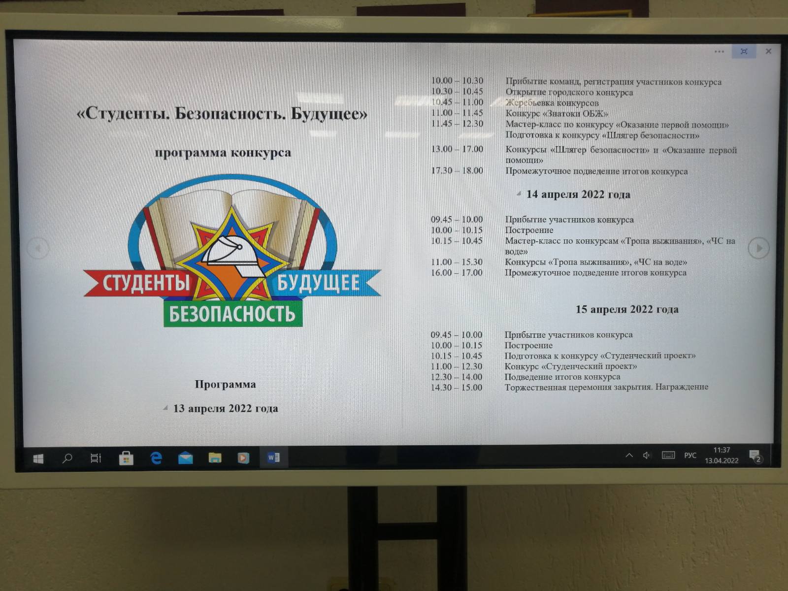 13-15 апреля проходит конкурс «Студенты. Безопасность. Будущее»