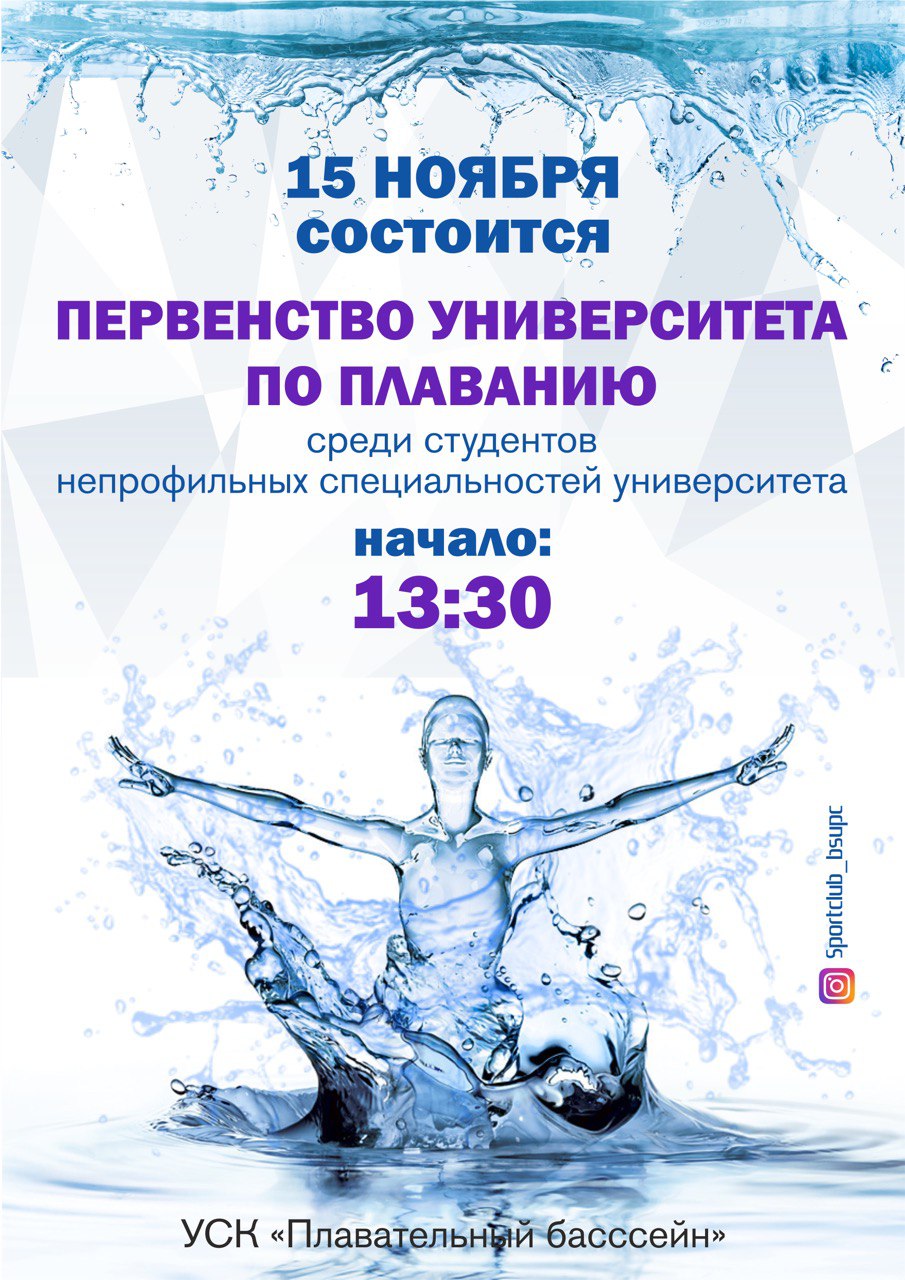 15 ноября состоится первенство университета по плаванию среди студентов непрофильных специальностей университета