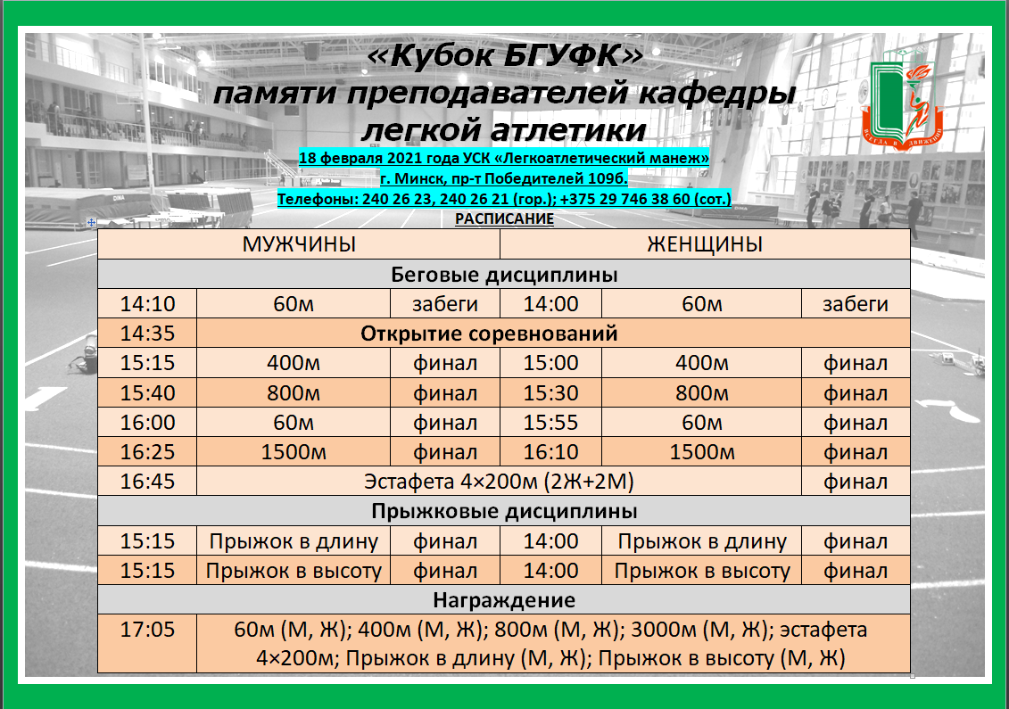 18 февраля состоится «Кубок БГУФК» памяти преподавателей кафедры легкой атлетики