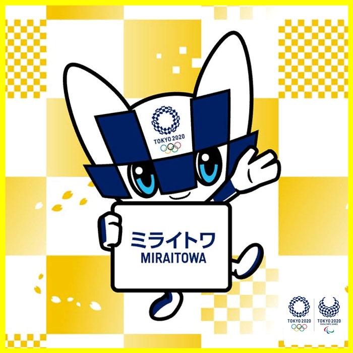 Для талисмана было выбрано имя «Мрайтова». Оно основано на японских словах «мирай» (будущее) и «това» (вечность). Это существо в сине-белую клетку, повторяющую узор на эмблеме токийских игр.