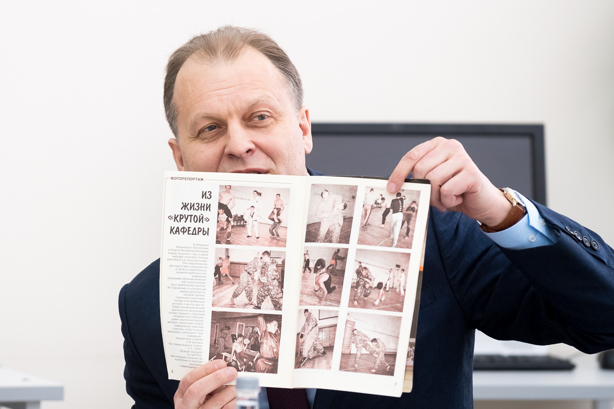 Иванов Дмитрий Эдуардович, президент Общероссийской общественной организации «Федерация рукопашного боя»: «Первый раз я узнал, что существует такая кафедра, когда мне в руки попал журнал 1996 года. На развороте журнала есть фоторепортаж из жизни «крутой» кафедры и о Викторе Анатольевиче. Сейчас есть интернет и практически все вы можете подчерпнуть оттуда и это очень важно это очень мощный информационный ресурс, мы же получали информацию из печатных изданий либо каких-то фильмов и это уникально.
