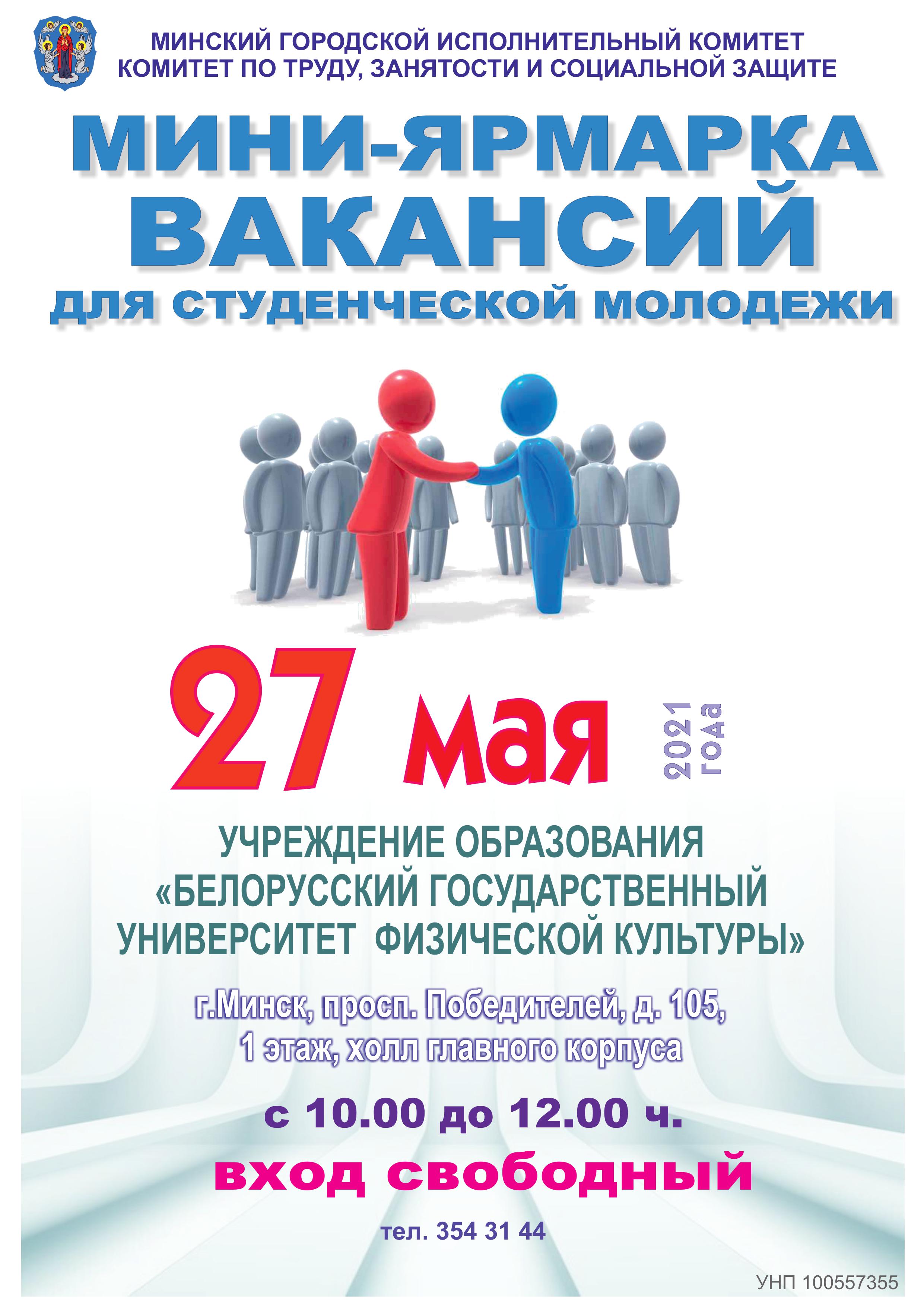 27 мая в университете пройдёт мини-ярмарка вакансий для студенческой молодежи