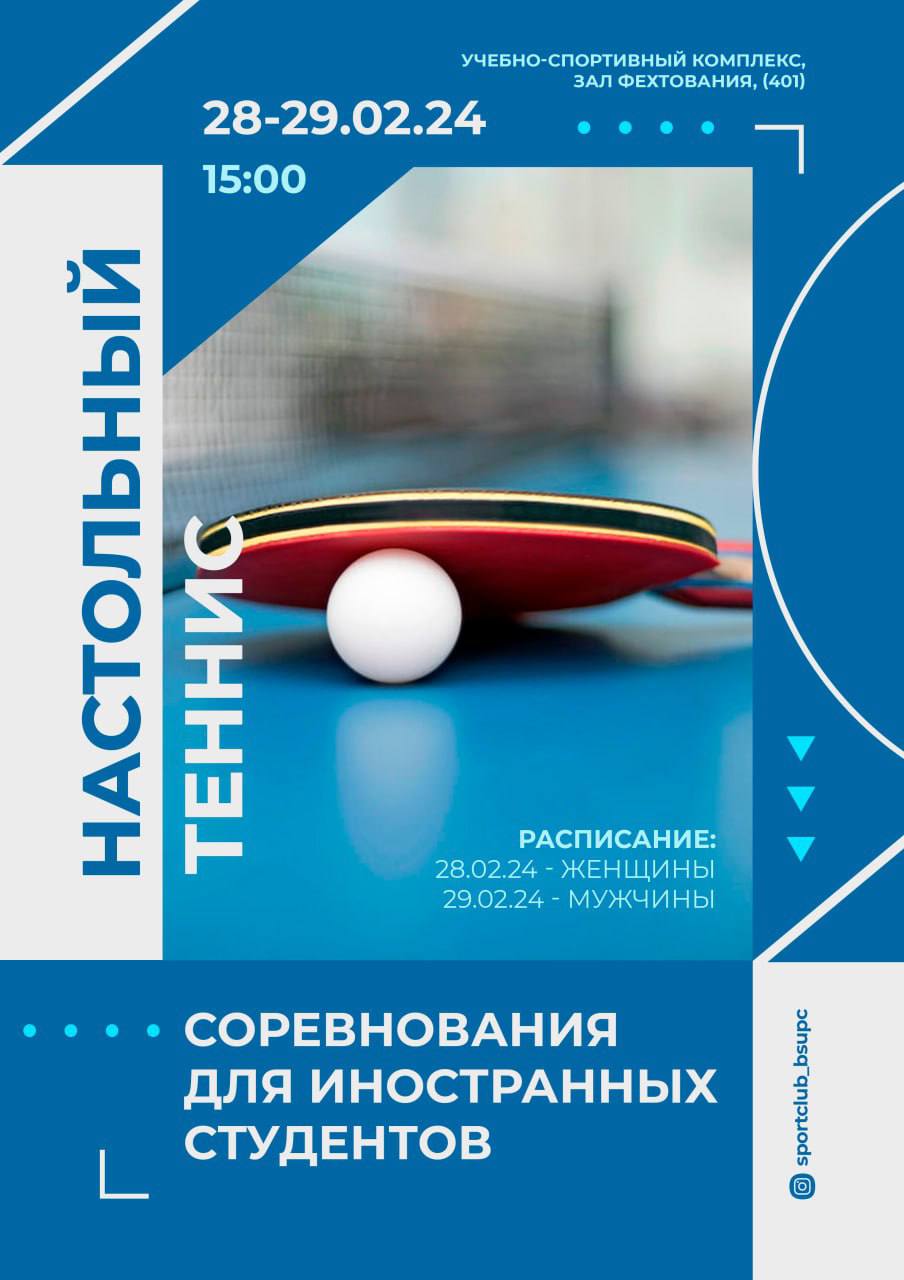 28-29 февраля пройдут соревнования по настольному теннису среди иностранных студентов