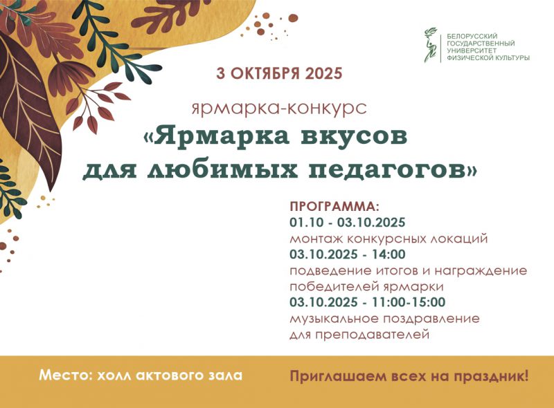 3 октября приглашаем на «Ярмарку вкусов для любимых педагогов»