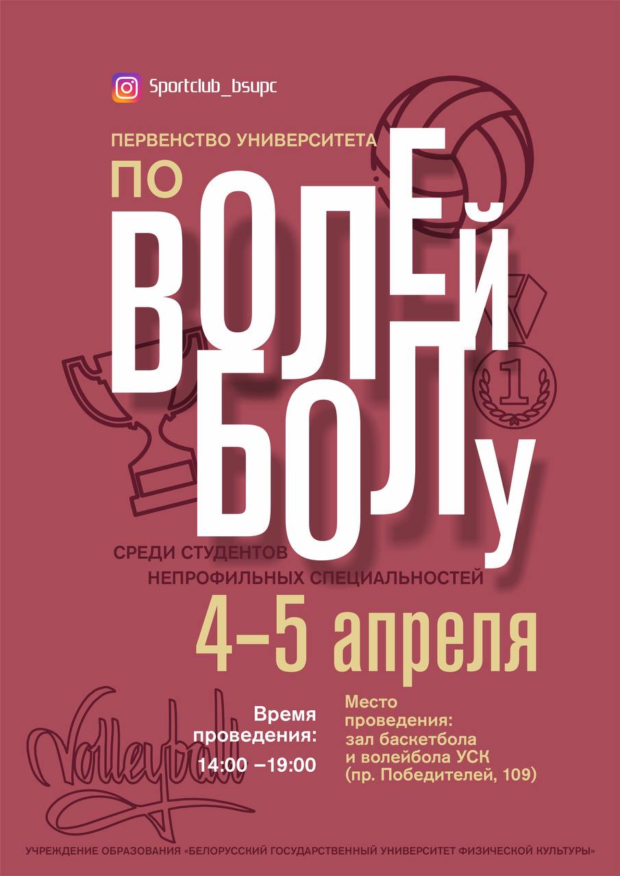 4-5 апреля состоится первенство университета по волейболу среди студентов непрофильных специальностей