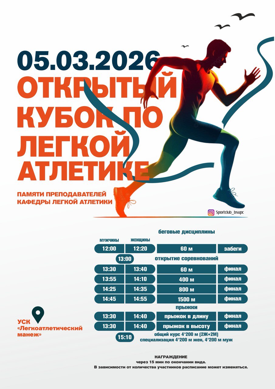 - 5 марта состоится Открытый кубок по легкой атлетике памяти преподавателей кафедры легкой атлетики