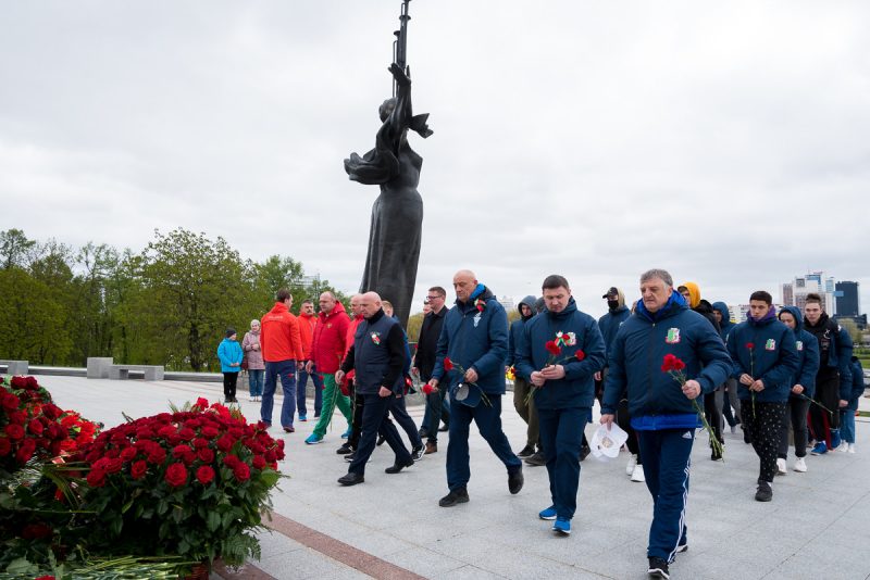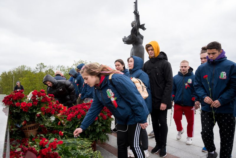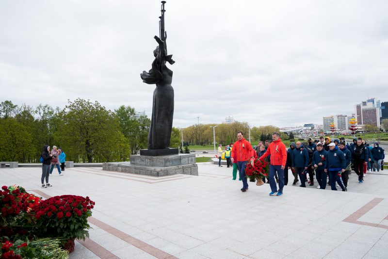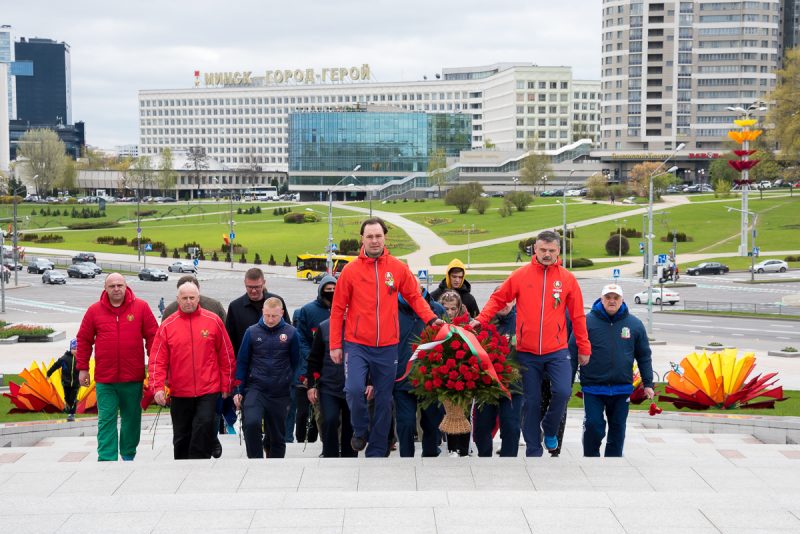 Белорусский государственный университет физической культуры совместно с Министерством спорта и туризма Республики Беларусь и Республиканским центром олимпийской подготовки по велосипедному спорту возложили цветы к стеле «Минск город-герой»