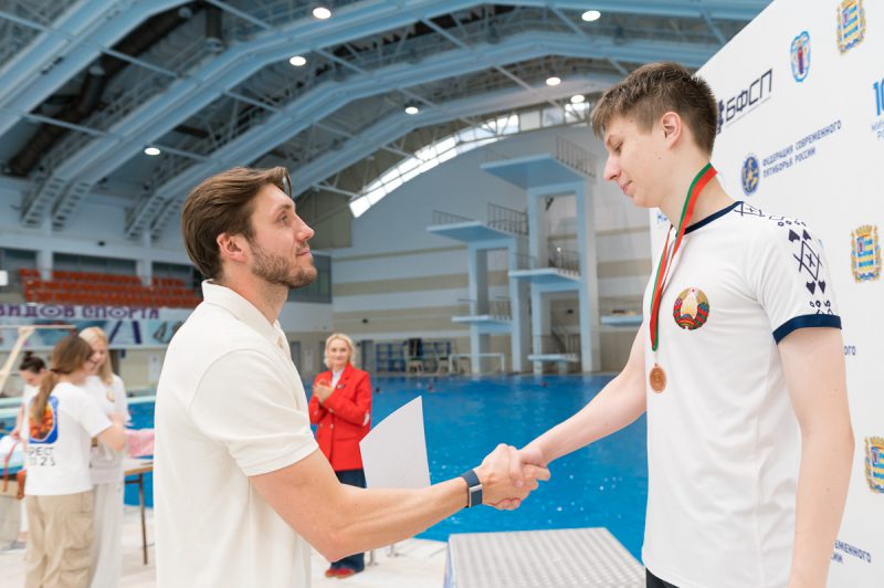 Золотой значок «Фiзкультурнік Беларусі» присвоен: Клинову Владимиру Владимировичу – первому проректору университета, доценту кафедры водных видов спорта.