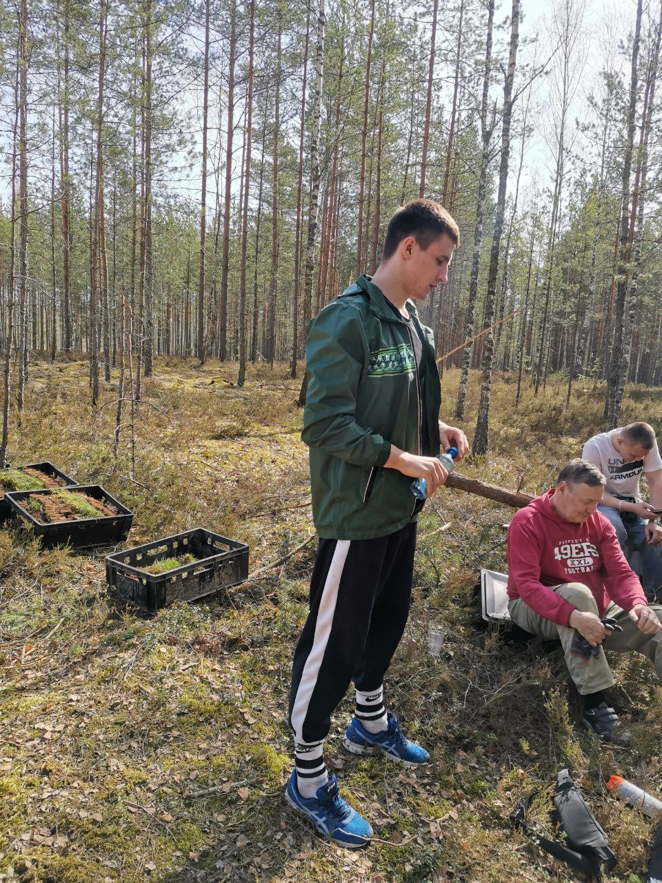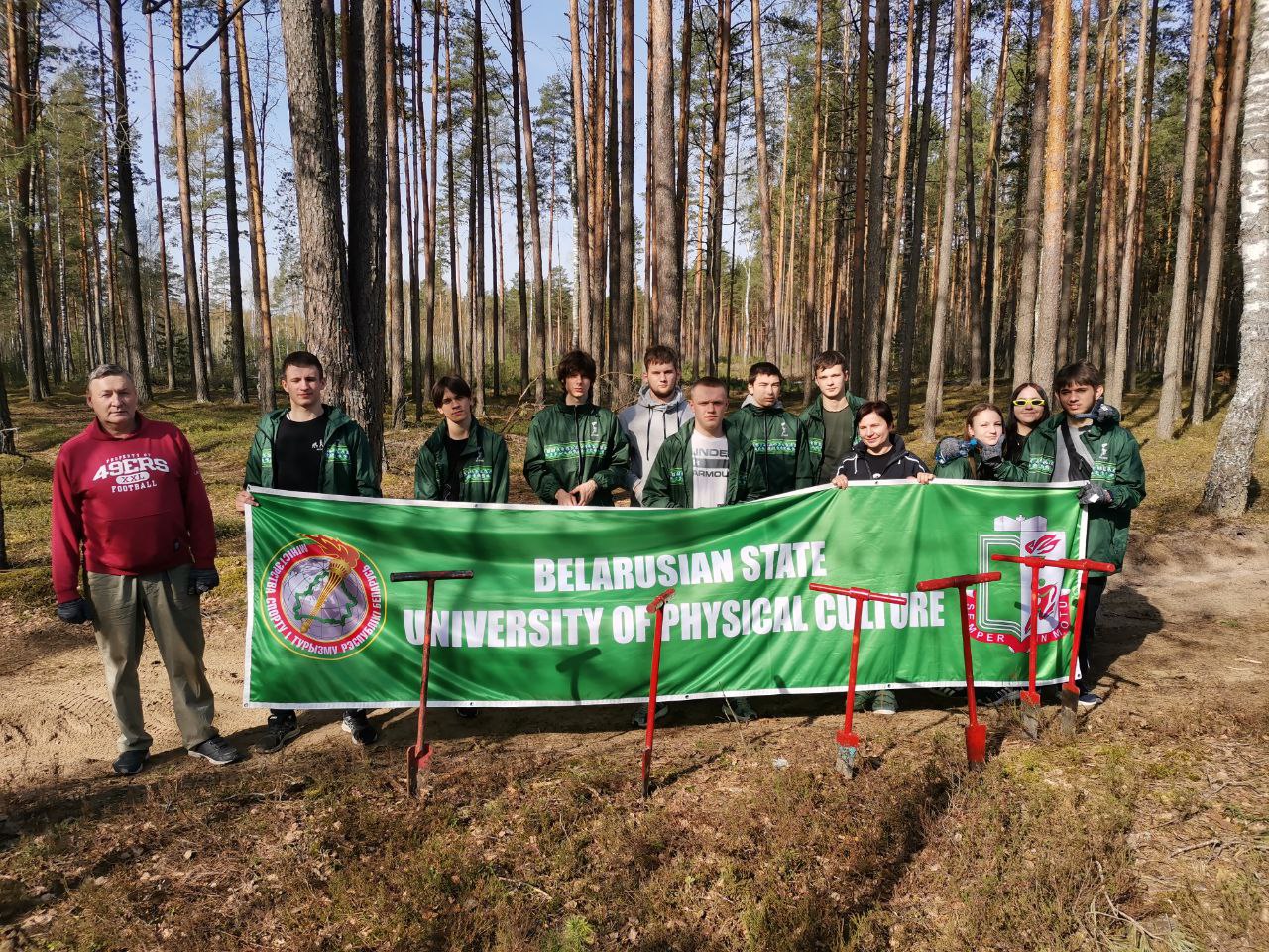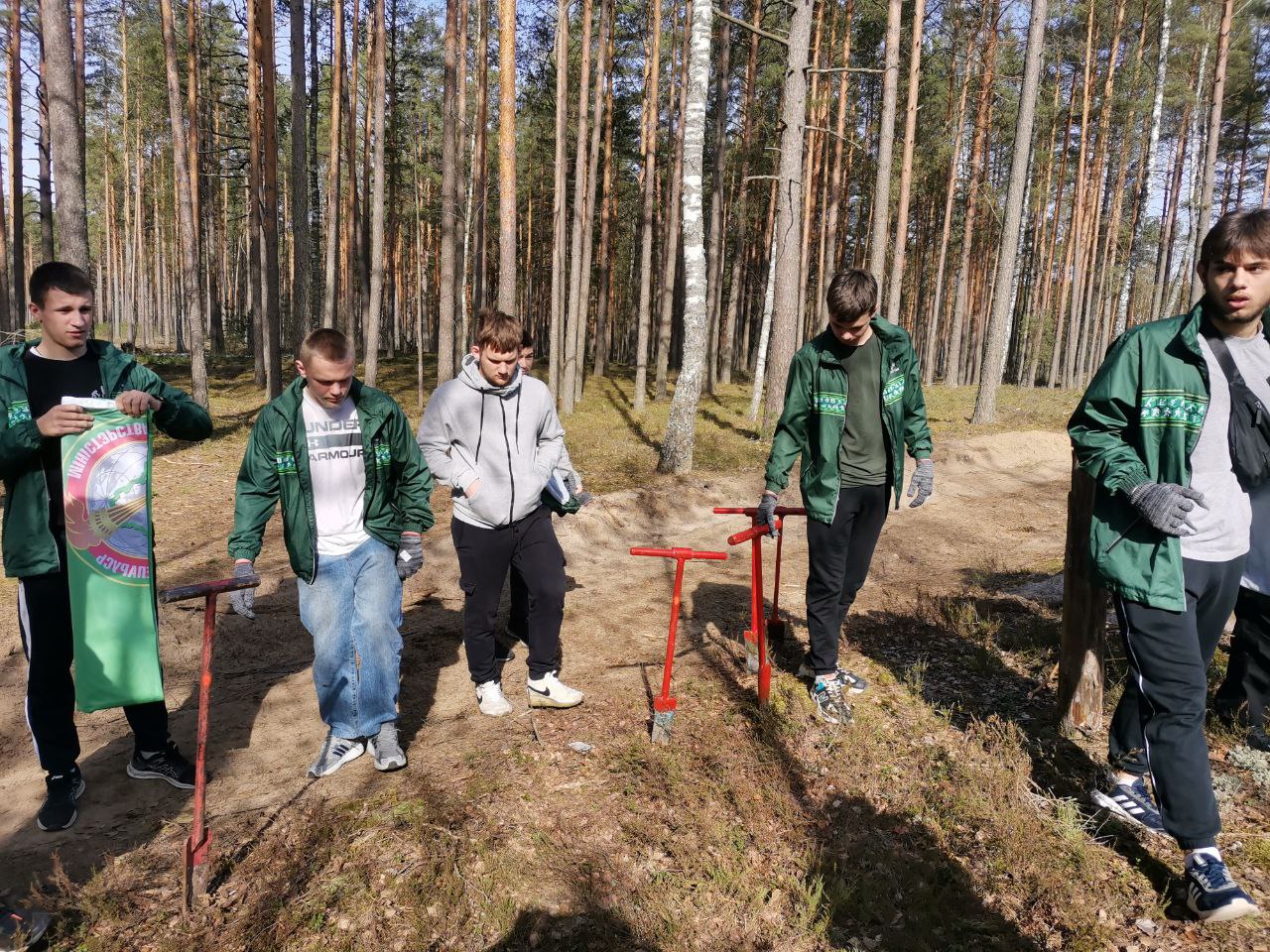 Студенты 113 и 123 групп вместе со старшим преподавателем кафедры спортивной борьбы Мацкевичем Валентином Николаевичем и заместителем декана по воспитательной работе Карась Оксаной Вячеславовной принимали активное участие в акции по посадке сосновых деревьев в Вилейском лесничестве. Солнечная погода и хорошее настроение способствовало слаженной работе!