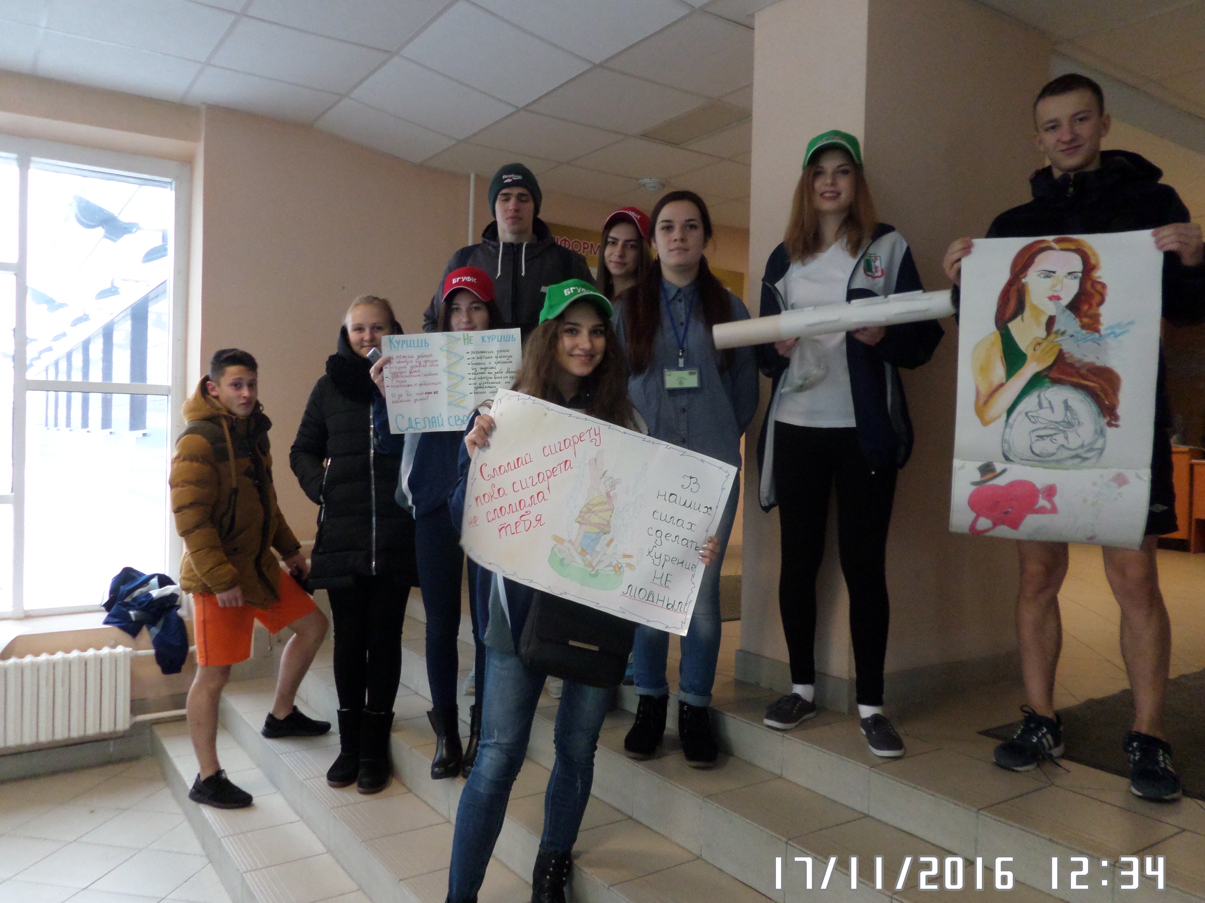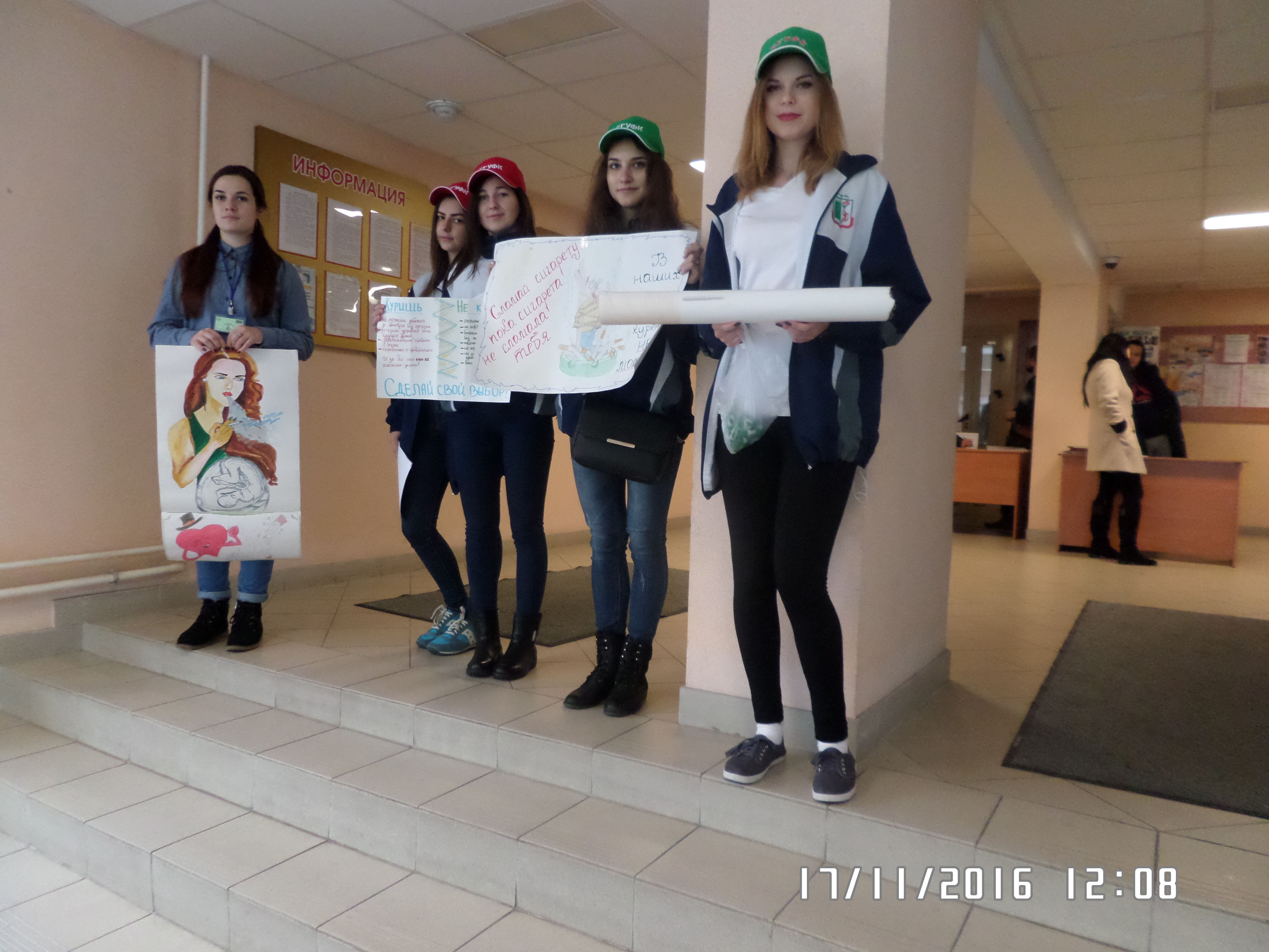 17 ноября в фойе общежития по адресу проспект Победителей, 105 состоялась акция «Скажи сигарете нет!». Студенты университета поддержали замечательную инициативу ежегодно отмечать Международный день отказа от курения в третий четверг ноября.