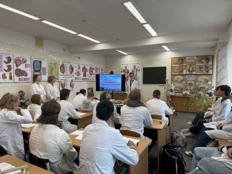 Заведующий и преподаватели кафедры анатомии познакомили студентов с вкладом каждого заведующего в развитие кафедры, трудностями и стойкостью ее сотрудников в военный и послевоенный периоды, особенностями образовательного процесса, наполнением музея натуральными анатомическими препаратами, научно-исследовательской работой, начиная со времени основания кафедры (1937 год) и до сегодняшних дней.