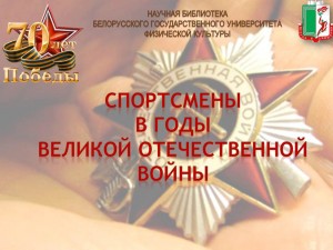 Также приглашаем посетить выставку литературы «Спортсмены в годы Великой Отечественной войны», которая находится в зале для научных сотрудников (ком. 108)