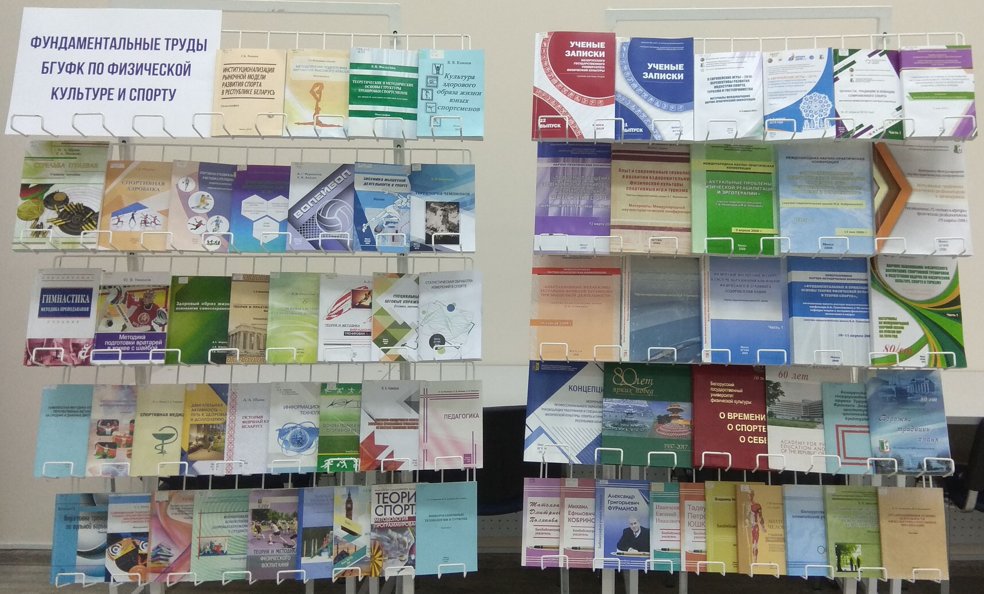 В читальном зале библиотеки в рамках мероприятий, посвященных празднованию Дня белорусской науки, организована тематическая выставка научной литературы «Фундаментальные труды БГУФК по физической культуре и спорту».