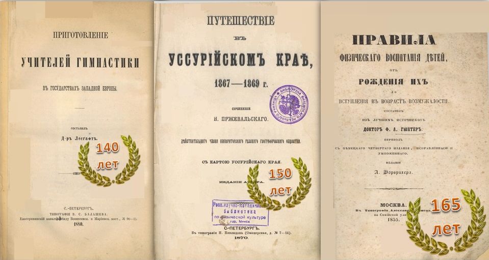 Юбилейные издания из нашего фонда — это не только литературная классика, но и материалы по истории и методике спорта, медицине и путешествиям. В целом, редкий фонд научной библиотеки насчитывает около 4000 документов. Основу фонда составляют книги спортивной тематики. Хранятся также книги по медицине, биологии, химии, педагогике и воспитанию, художественная литература и энциклопедии.