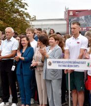 Открыли мероприятие поднятием Государственного флага Республики Беларусь и исполнением Государственного гимна. На мероприятии присутствовал Министр спорта и туризма Республики Беларусь Сергей Михайлович Ковальчук, который традиционно каждый новый учебный год встречает вместе со студентами 1-го курса БГУФК. Сергей