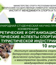 ВЕРНУТЬСЯ НА ГЛАВНУЮ СТРАНИЦУ МЕЖДУНАРОДНАЯ СТУДЕНЧЕСКАЯ НАУЧНО-ПРАКТИЧЕСКАЯ КОНФЕРЕНЦИЯ «ТЕОРЕТИЧЕСКИЕ И ОРГАНИЗАЦИОННО-ПРАКТИЧЕСКИЕ АСПЕКТЫ СПОРТИВНОЙ И ТУРИСТИЧЕСКОЙ ИНДУСТРИИ» Институт менеджмента спорта и туризма Белорусского государственного университета физической культуры приглашает студентов и магистрантов принять участие в работе XVII Международной студенческой научно-практической
