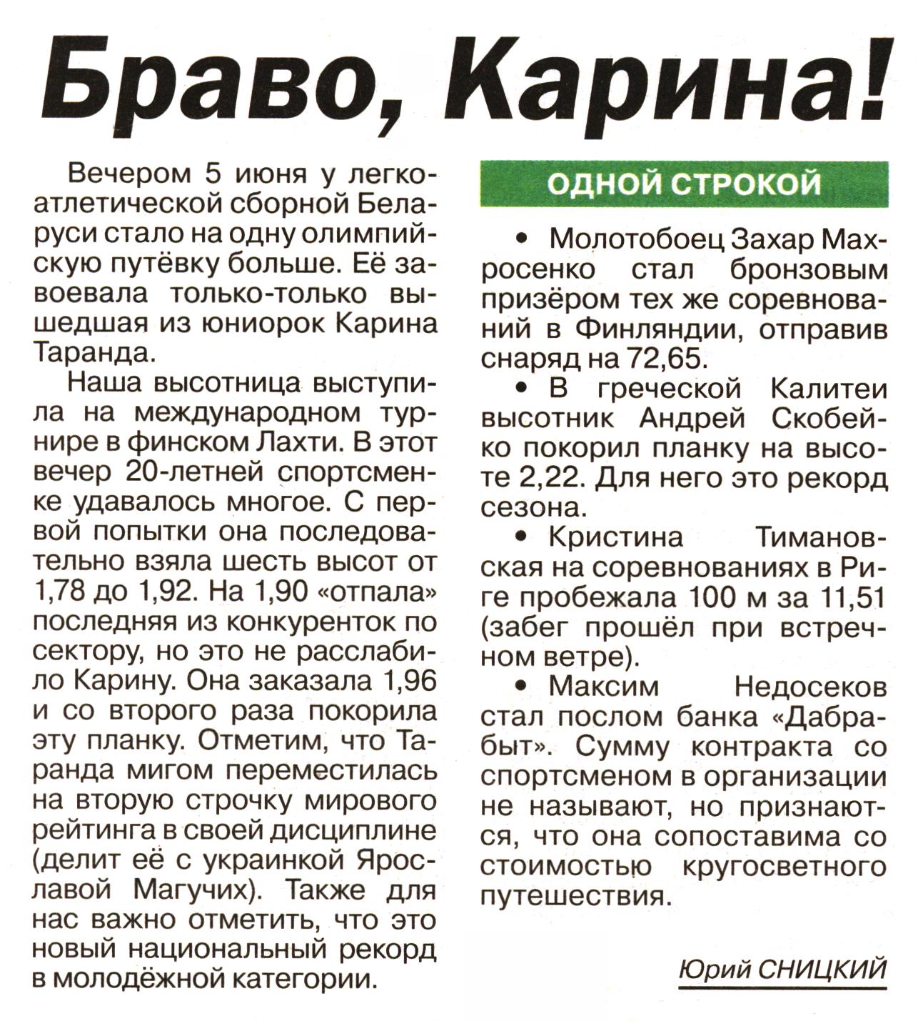 «У меня есть постоянная цель — улучшать свои результаты» : [беседа] / И. Шиманович ; вел беседу М. Владимиров