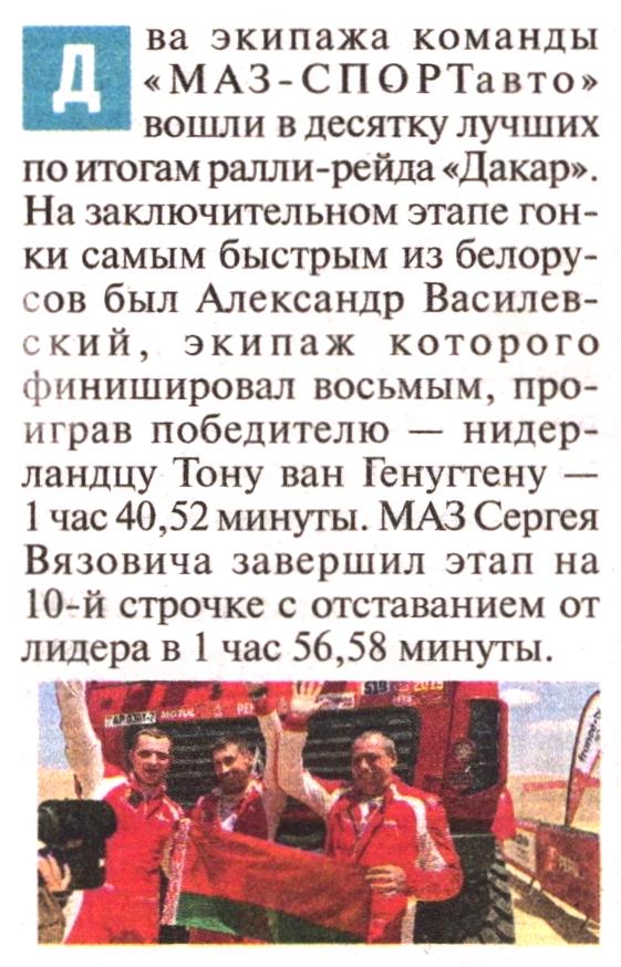 По итогам ралли-рейда «Дакар» Сергей вязович, студент БГУФК, завершил этап на10-й строчке.