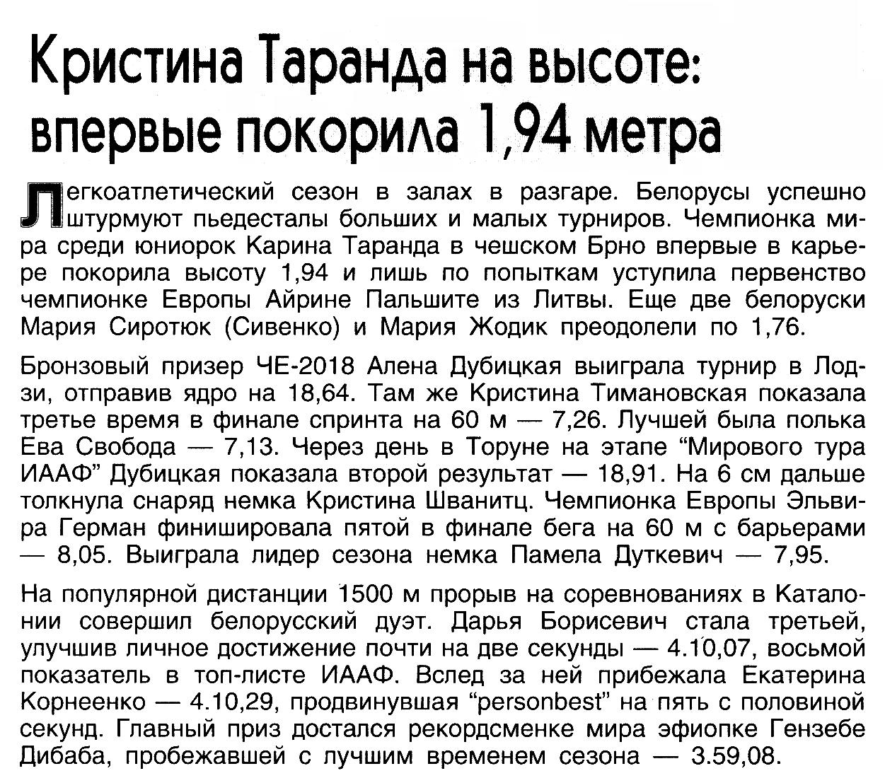 // Советская Белоруссия. — 2019. — 2 февр. — С. 22.