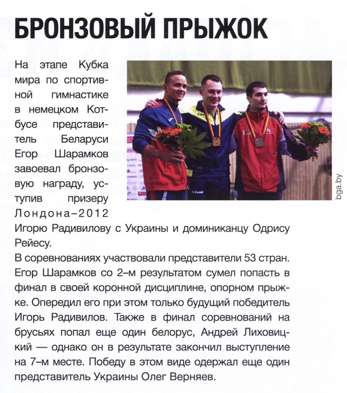 На этапе Кубка мира по спортивной гимнастике в Коттбусе Егор Шарамков (студент БГУФК) завоевал бронзовую медаль.