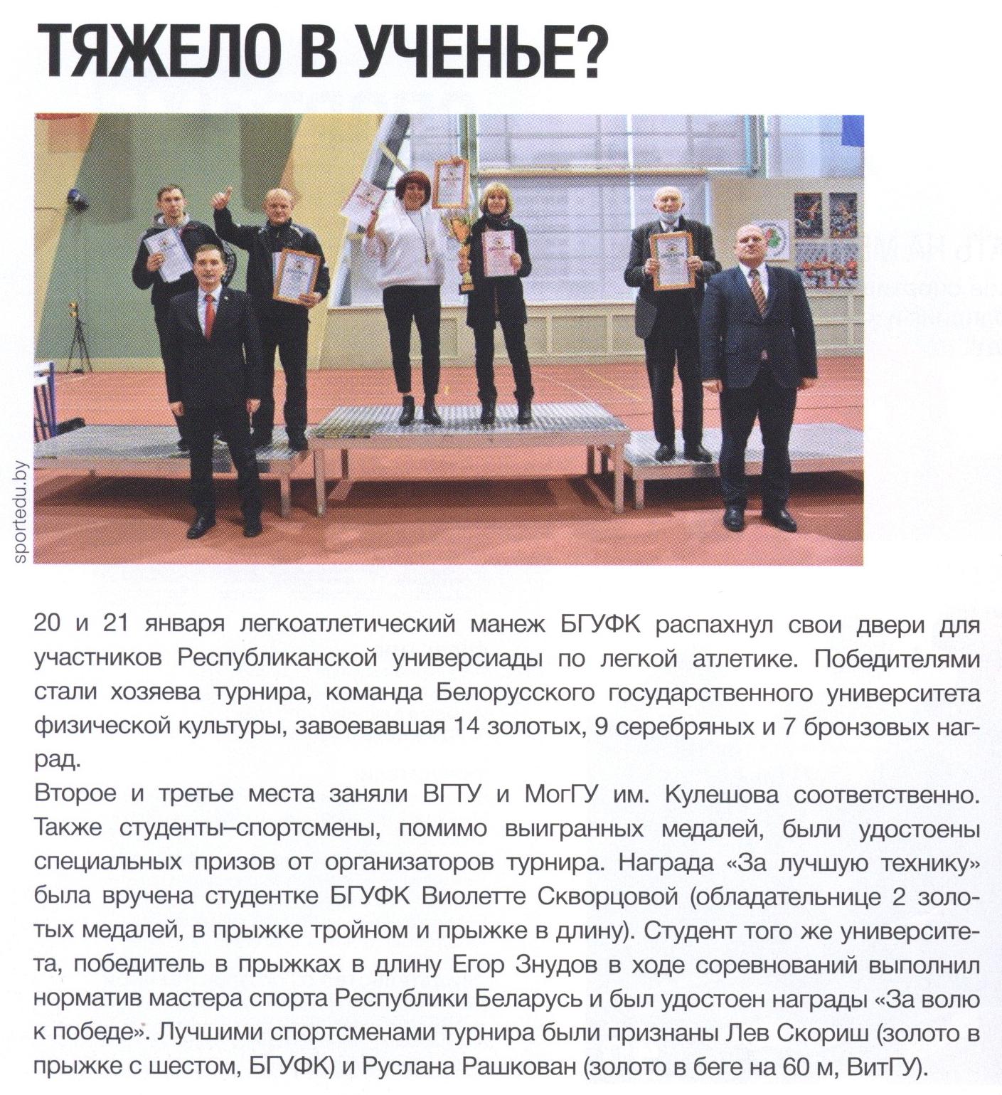 О завершившейся в легкоатлетическом манеже БГУФК республиканской универсиаде по легкой атлетике.