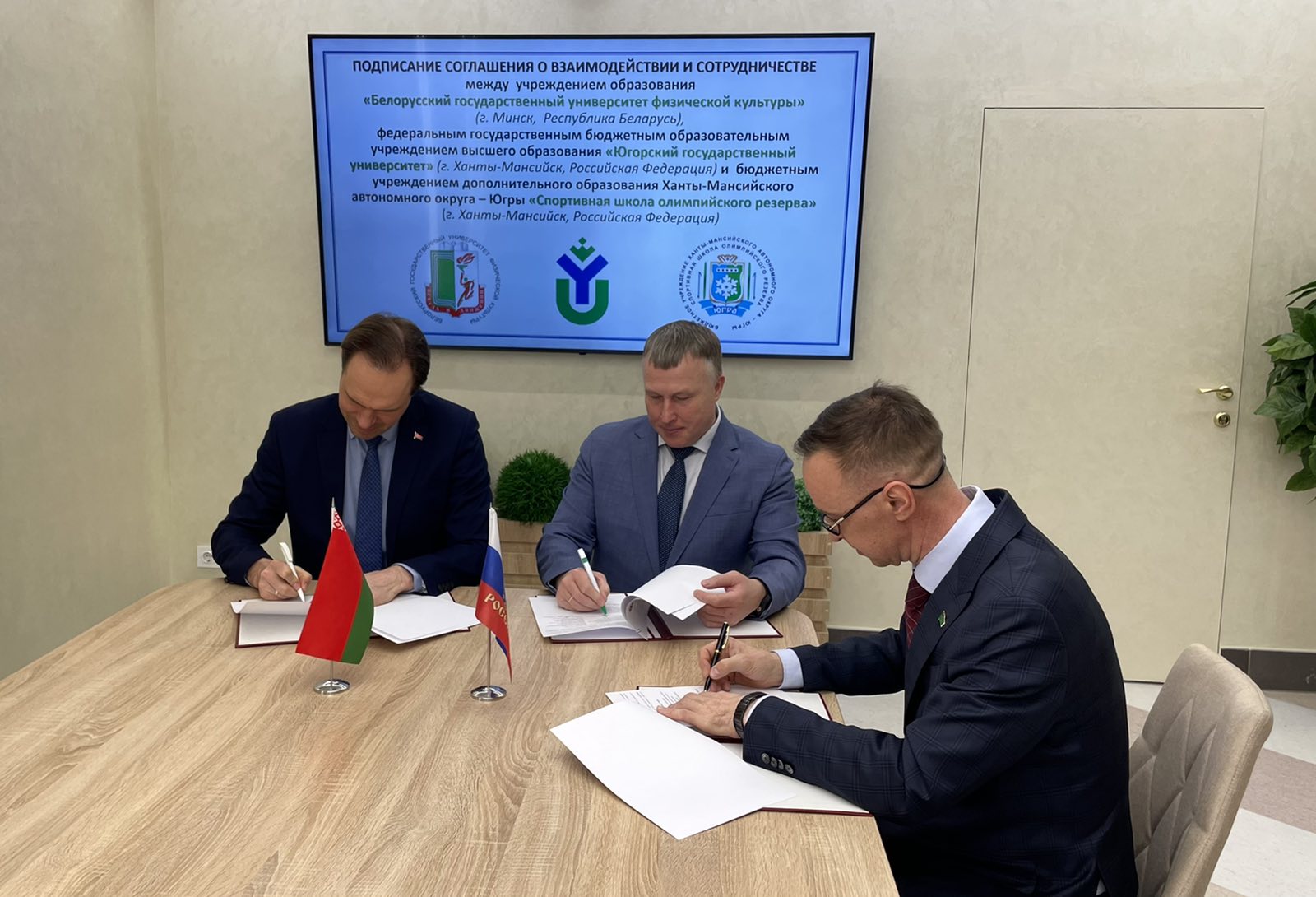 Целью визита стал обмен профессиональными знаниями и опытом в сфере подготовки специалистов в различных областях спорта и туризма, развитие совместной научно-исследовательской и инновационной деятельности, а также подписание трехстороннего договора о сотрудничестве между БГУФК, Югорским государственным университетом и Федерацией лыжных гонок Ханты-Мансийского автономного округа – Югры.