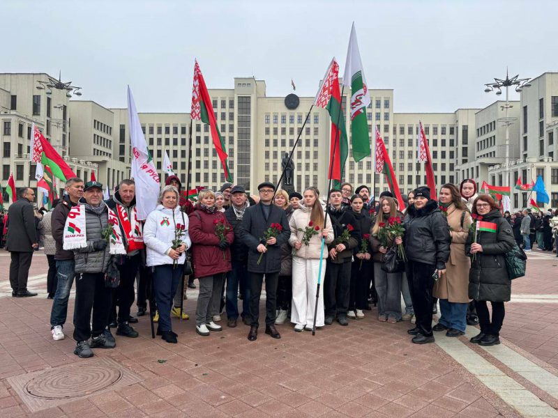 Этим утром трудовой и студенческий коллектив БГУФК во главе с проректором по идеологической и воспитательной работе Артемом Васильевичем Свиридовым приняли участие в торжественном митинге и возложении цветов к памятнику В.И.Ленина на площади Независимости.