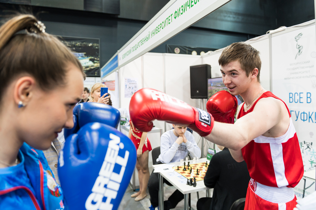 Наши специалисты подробно рассказывали информацию об условиях поступления и учебном процессе в университете, также посетители узнали о том, какие возможности предоставляет самый спортивный вуз страны. Большим спросом пользовалась интерактивная развлекательная площадка. Пострелять по мишени из лазерного пистолета, поиграть в шахматы, посмотреть мастер-класс по фитнесу, боксу и восточным единоборствам — эти и другие активности были представлены на нашем стенде.