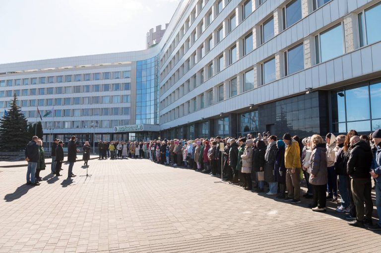 Перед проведением Республиканского субботника было организовано торжественное построение всех участников мероприятия. С напутственным словом выступил ректор университета Сергей Борисович Репкин, который пожелал всем плодотворной работы и отличного настроения!