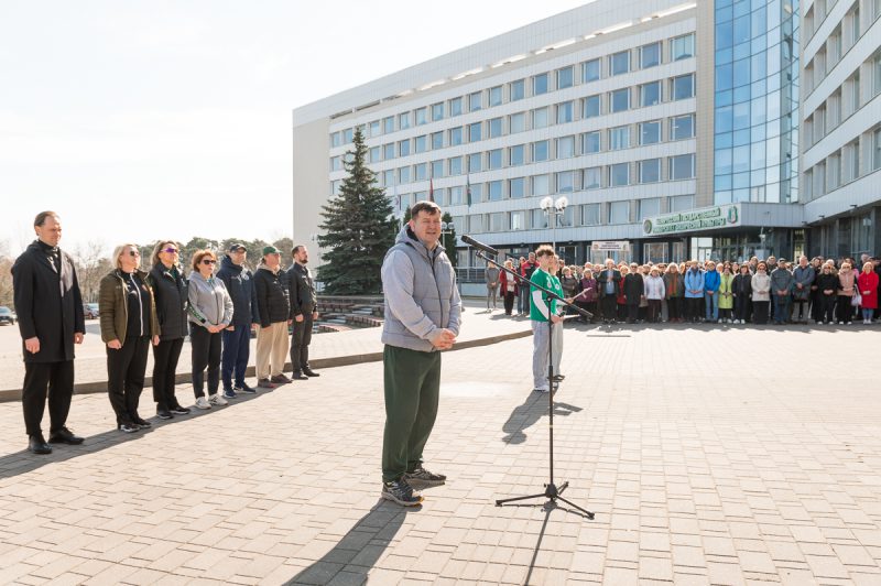 Перед проведением Республиканского субботника было организовано торжественное построение всех участников мероприятия. Почетным гостем стал заместитель Министра спорта Республики Беларусь Александр Иванович Барауля. Он отметил, что Республиканский субботник — это хорошая и добрая традиция, которая сплачивет коллектив. Александр Иванович пожелал всем участникам удачи, успехов и хорошо потрудиться.