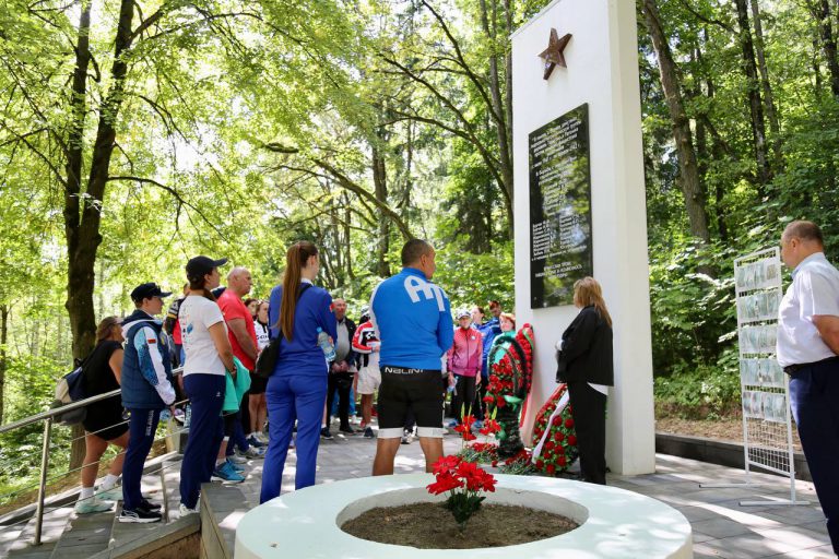 Также в рамках республиканской спартакиады среди работников физической культуры, спорта и туризма прошел велопробег. Участники возложили цветы к стеле в память о боевых действиях подпольно-патриотической группы деревень Тарасово и Ратомка против немецко-фашистских захватчиков.
