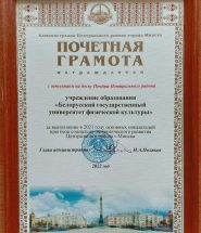 БГУФК награжден Почетной грамотой с занесением на доску Почёта Центрального района