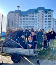 28, 29, 30 октября в рамках субботника в университете была организована уборка территории от листвы и покраска мелких архитектурных элементов, стрижка кустов и деревьев, а также уборка прилегающей к университету территории Центрального района г.Минска по ул.Радужная, ул.Нарочанская