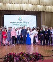 29 июня состоялось торжественное вручение дипломов 174 выпускникам дневной формы получения образования спортивно-педагогического факультета спортивных игр и единоборств. 8 выпускников получили дипломы о высшем образовании с отличием – Дарья Кулевская, Дмитрий Рубан – тренерская работа по волейболу,