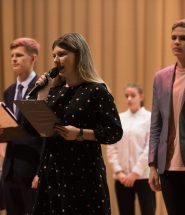 Первая зимняя сессия у первокурсников ещё впереди, но серьёзнейший экзамен – творческий – они уже сдали. Два месяца упорных репетиций, факультетские отборочные туры, и вот лучшие выступления наших новобранцев представлены на суд полутысячной аудитории актового зала. В