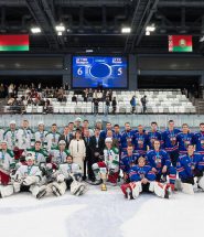 Сегодня на льду «Олимпик-Арены» сошлись сборные Белорусского государственного университета физической культуры и Смоленского государственного университета спорта. Матч был посвящен 80-й годовщине Победы в Великой Отечественной войне. Почетные гости мероприятия — первый проректор Белорусского государственного университета физической культуры