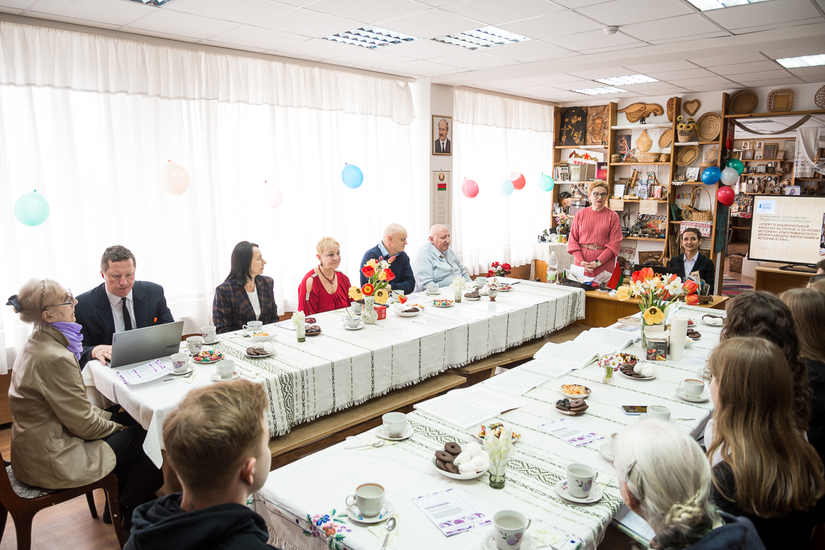 В историко-этнографическом музее кафедры философии и истории состоялся традиционный VI научный коллоквиум – студенческая конференция «Спорт в национальной культуре Беларуси: к 30-летию историко-этнографического музея кафедры философии и истории». Участие в мероприятия приняли студенты, магистранты и приглашенные специалисты. 7 устных докладов затронули следующие темы: 30-летие историко-этнографического музея: достижения и перспективы (доцент кафедры, кандидат исторических наук С.А.Мышепуд); механизмы использования социальных сетей для популяризации, сохранения и развития локальных, местных музеев и культурных учреждений (студенты 112 группы, члены СНИЛ А.Михалюто, В.Мычко, А.Глуховцева); современные проблемы национального самоопределения (магистрант А.Нестеренко); особенности трансформации системы советского спорта в связи с вхождением в Международный Олимпийский комитет (студентка Е.Дайлиденок); противостояние баскетбольных команд СССР и США в финале мюнхенской Олимпиады 1972 года (студентка В.Бешанова); история становления и современное состояние одного из старейших видов спорта – стрельбы из лука (студентка А.Бусева); результаты выступления белорусских спортсменов на Европейских играх (студентка Д.Бабанова).