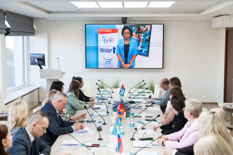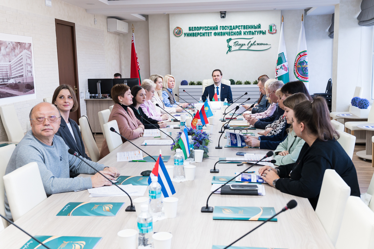 Центральным событием дня стал круглый стол «Университетское сотрудничество: евразийский масштаб», приуроченный к председательству Республики Беларусь в ЕАЭС. Мероприятие собрало представителей ведущих спортивных и медицинских вузов ЕАЭС из России (Уфа, Казань, Омск, Нижний Новгород, Чайковский, Смоленск), Беларуси, Казахстана, Киргизии, Армении (более 40 человек), продемонстрировав высокий потенциал академического партнерства. Не оставили без внимания данный вопрос и наблюдатели ЕАЭС – Куба и Узбекистан, которые приветствовали участников столь уважаемого собрания и выступили с докладами в режиме онлайн.