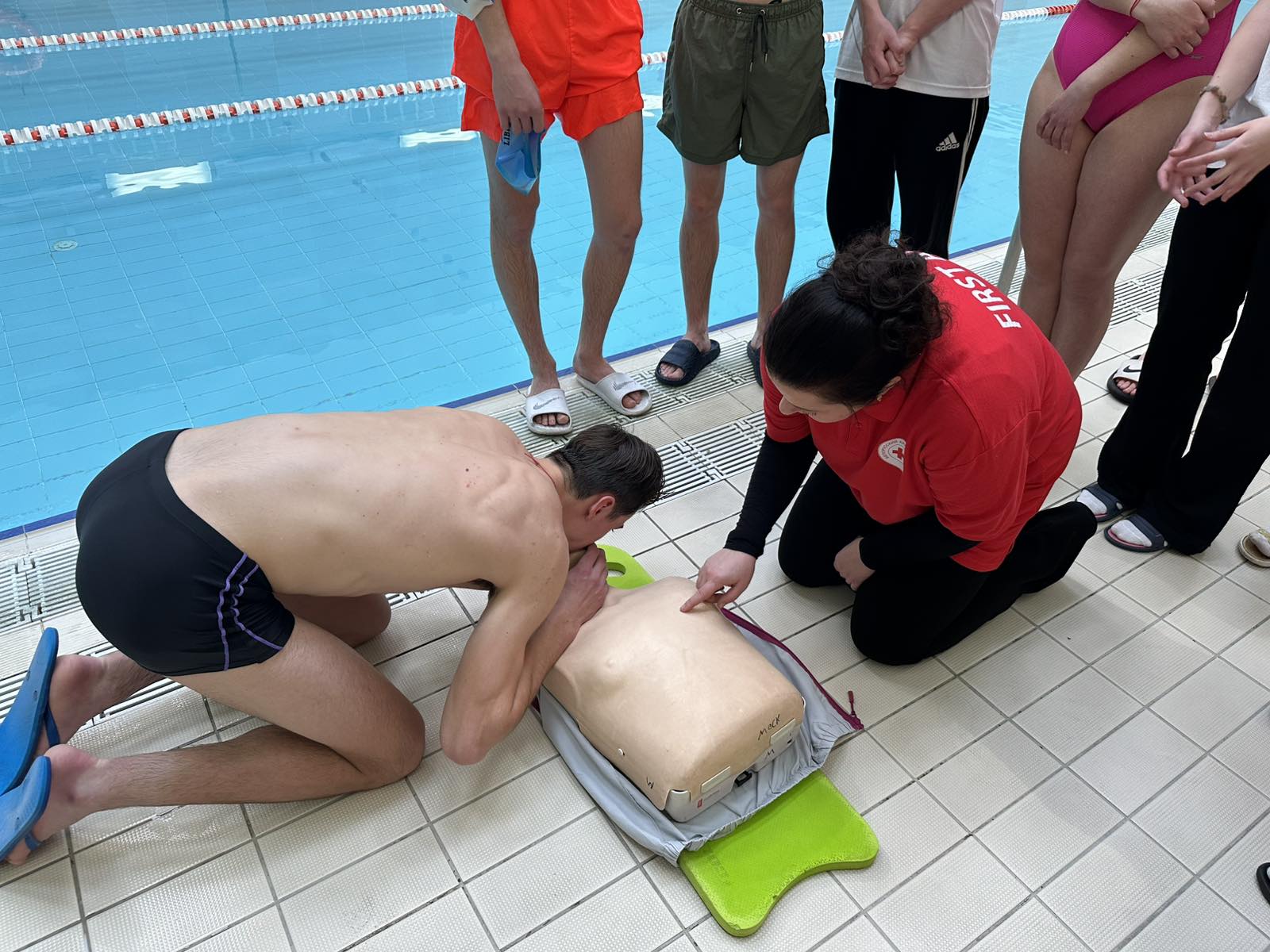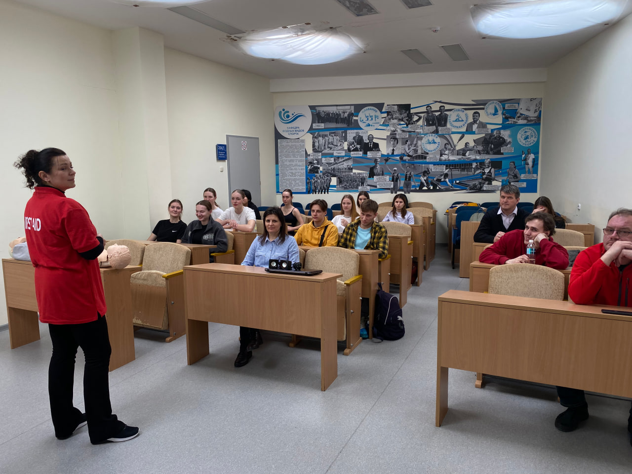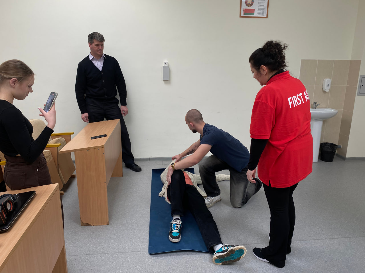 На кафедре водных видов спорта инструктором по обучению навыкам оказания первой помощи Белорусского Общества Красного Креста, заведующим кафедрой лечебной физической культуры и физической культуры дошкольников Аниськовой Ольгой Евгеньевной был проведен практический семинар «Оказание первой помощи на воде». В мероприятии приняло участие более 50 человек. Преподаватели и студенты изучили и отработали алгоритм оказания первой помощи, восстановительное положение, сердечно-легочную реанимацию. Практическая часть была проведена в аудитории и в бассейне плавательного комплекса.