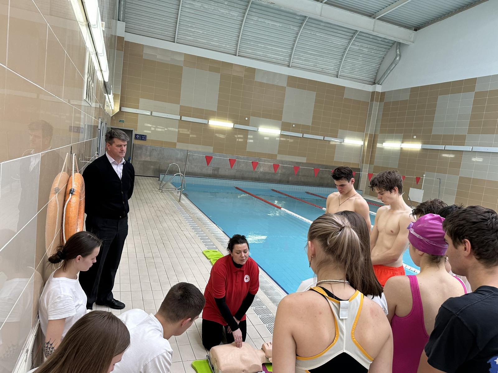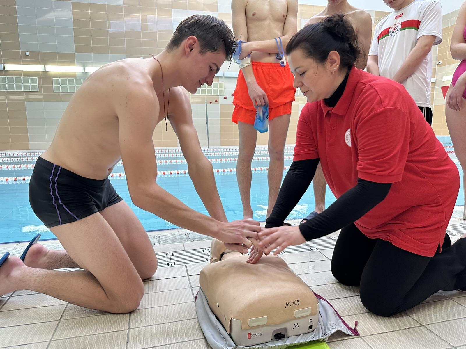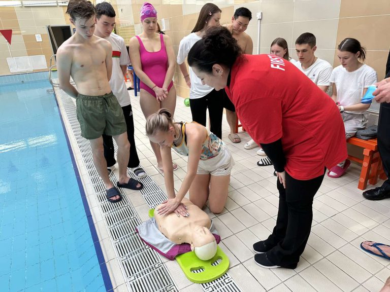 На кафедре водных видов спорта инструктором по обучению навыкам оказания первой помощи Белорусского Общества Красного Креста, заведующим кафедрой лечебной физической культуры и физической культуры дошкольников Аниськовой Ольгой Евгеньевной был проведен практический семинар «Оказание первой помощи на воде». В мероприятии приняло участие более 50 человек. Преподаватели и студенты изучили и отработали алгоритм оказания первой помощи, восстановительное положение, сердечно-легочную реанимацию. Практическая часть была проведена в аудитории и в бассейне плавательного комплекса.