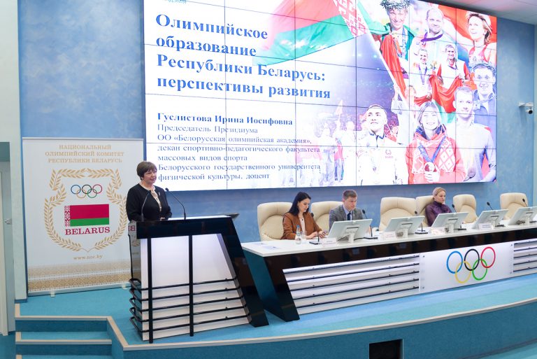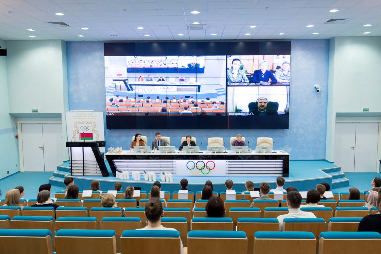 6 апреля, в Международный день спорта на благо развития и мира, в Национальном олимпийском комитете началась двухдневная Международная научно-практическая конференции «Олимпийское образование в системе межкультурного взаимодействия», организованная спортивно-педагогическим факультетом массовых видов спорта и Белорусской олимпийской академией при поддержке Национального олимпийского комитета Республики Беларусь и Министерства спорта и туризма Республики Беларусь. В первый день в конференции приняли участие более 50 человек, среди которых ученые и специалисты в сфере физической культуры и спорта из Беларуси и России, педагогические работники учреждений образования, руководители организаций физической культуры и спорта, учащиеся и студенты. Обсуждение теоретических вопросов научно-исследовательской работы, методики и практики по актуальным вопросам развития физической культуры, спорта и олимпийского образования прошло на пленарном заседании с онлайн-подключением специалистов в области олимпийского образования. Участники конференции смогли также ознакомиться с практическим опытом учителя начальных классов ГУО «Учебно-педагогический комплекс детский сад-начальная школа №31 г. Минска» Н.В.Румянцевой по организации и проведению занятий «Олимпийский урок» с учащимися 3 «Б» класса.