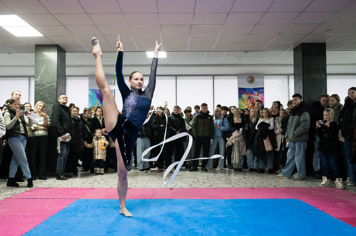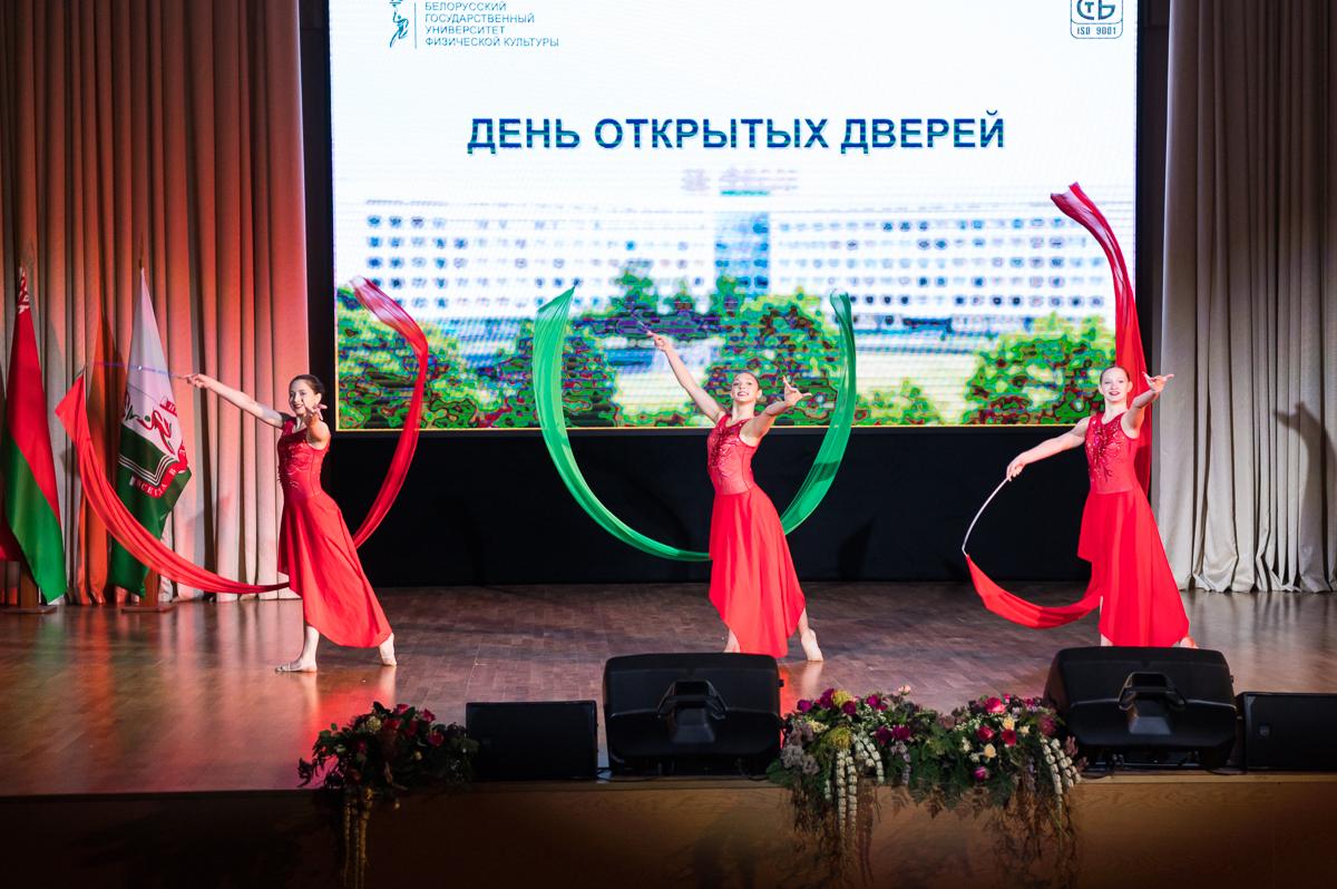 Торжественную часть мероприятия открыли лауреаты специального фонда Президента Республики Беларусь по поддержке талантливой молодежи, многократные призеры и победители международных конкурсов хореографии студенческий коллектив «Театр гимнастики», руководитель Карина Андреевна Метелица.