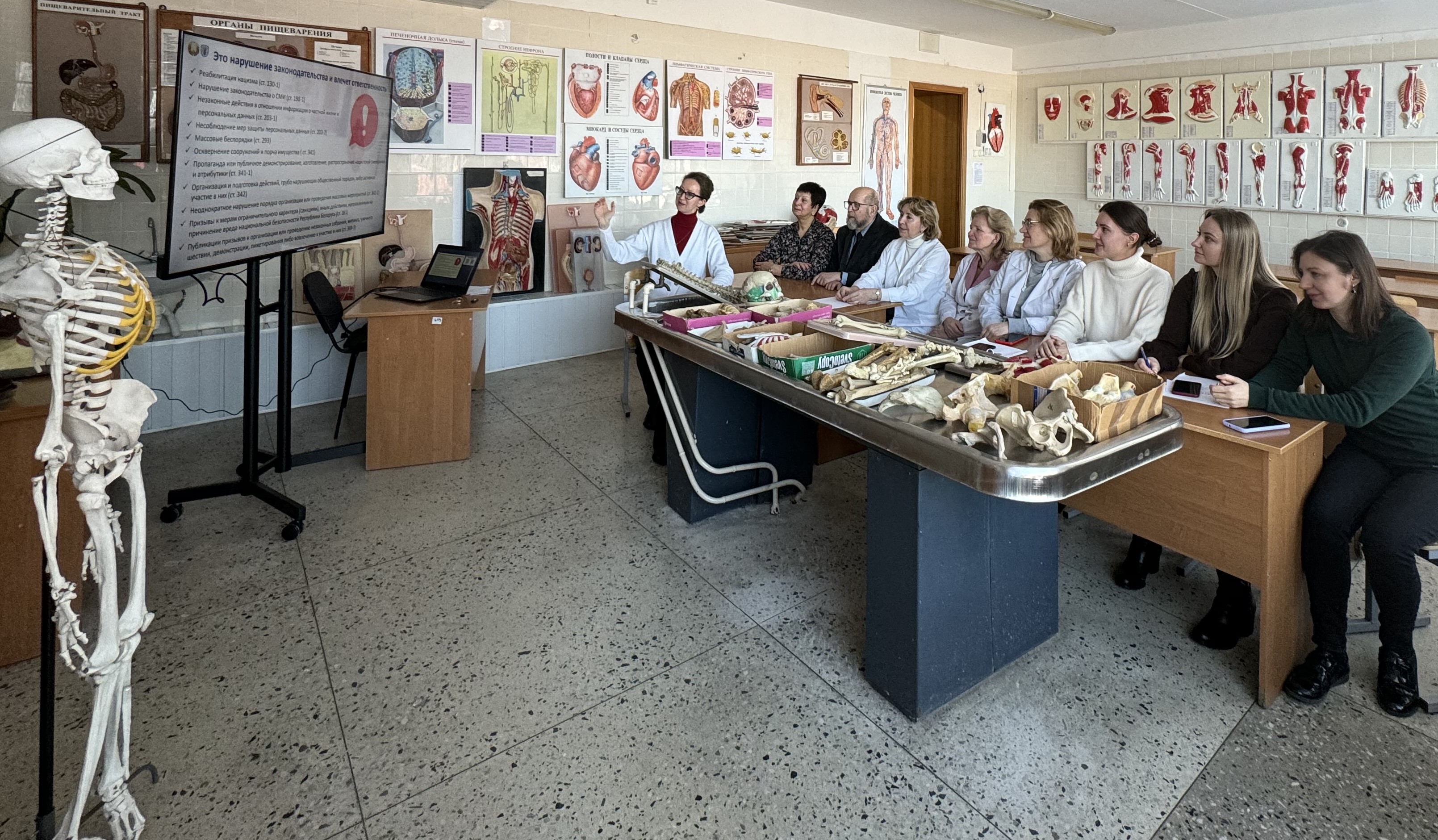 На кафедре анатомии факультета оздоровительной физической культуры 19 января 2024 года состоялась диалоговая встреча с коллективом «Навстречу выборам с умом». Заведующий кафедрой Елена Брониславовна Комар обратила внимание всех сотрудников на особенности проходящей в стране избирательной кампании по выборам депутатов в Единый день голосования: подробно рассказала о ключевых аспектах избирательной кампании и особенностях ее проведения. Елена Брониславовна отметила роль и важность преподавателей в формировании правильной гражданской позиции студентов. Результатом коллегиального обсуждения вариантов работы со студентами нашего университета явились предложения о проведении с ними просветительских бесед во время проведения учебных занятий на кафедре и во внеучебное время – час общения со студентами «Будущее в наших руках».
