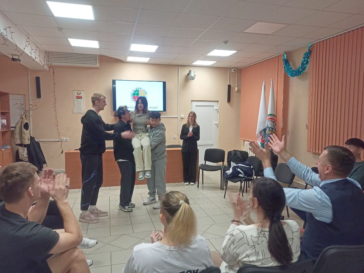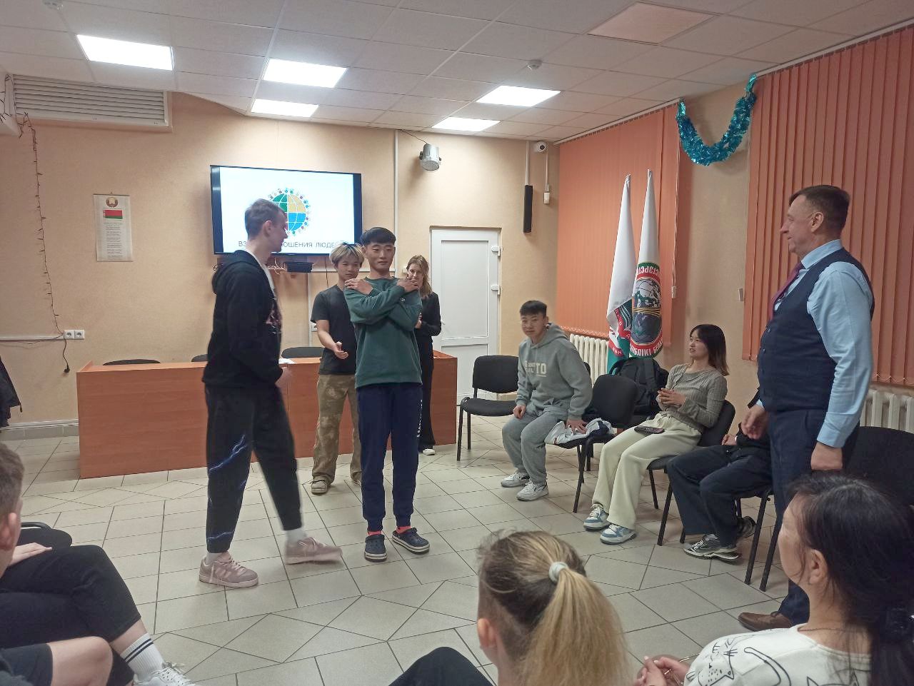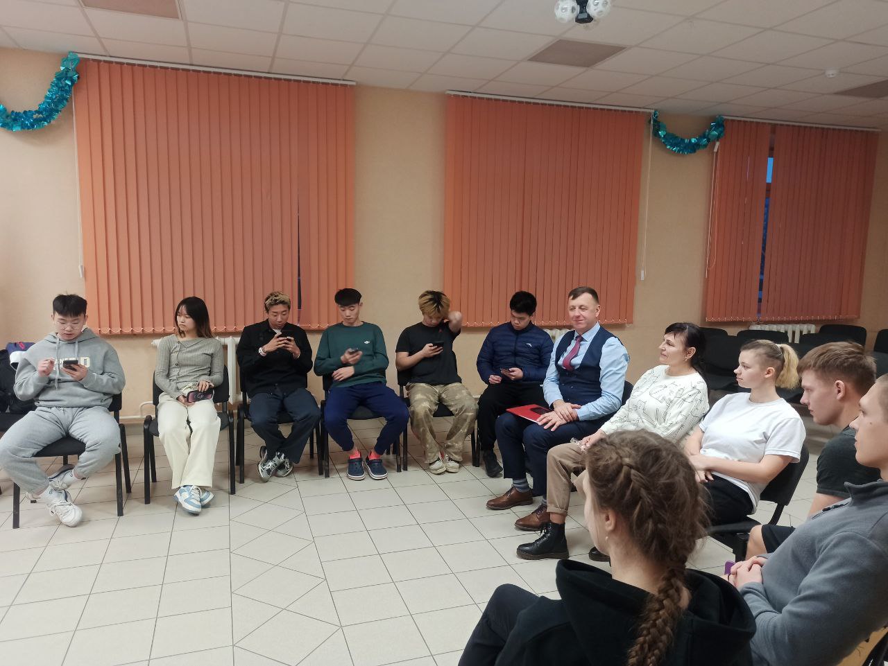 Ребята из психологического клуба пригласили иностранных студентов, проживающих в общежитии чтобы обсудить вопросы возможно ли изменить себя в лучшую сторону.