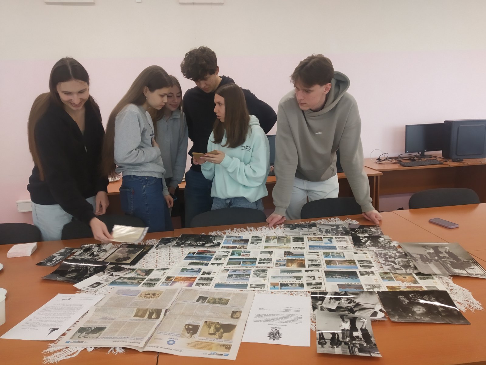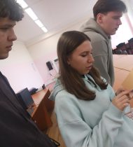 Студенты познакомились с фотографиями Парада Победы 1973 года в Москве на Красной площади, полистали настоящую красноармейскую книжку, подержали в руках заветные, долгожданные «треугольнички» — письма с фронта.